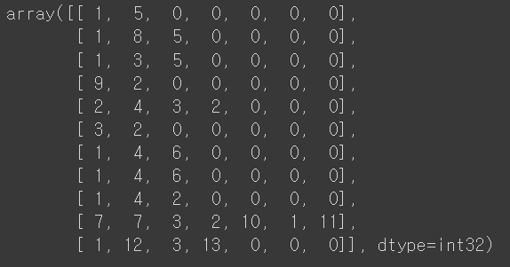 (#0: Padding, 1: OOV, 2~n+1: 상위 n개 단어)