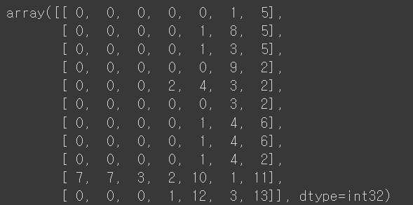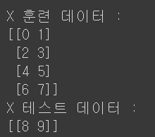 print('X 테스트 데이터 :')