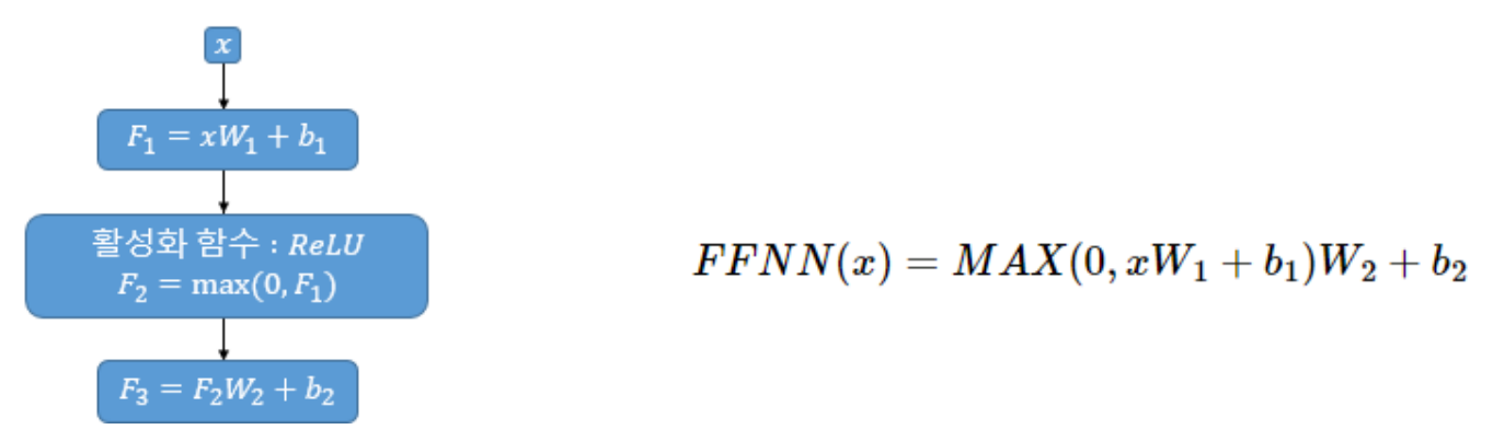 FFNN을 통한 연산은 다음과 같이 표현할 수 있다: