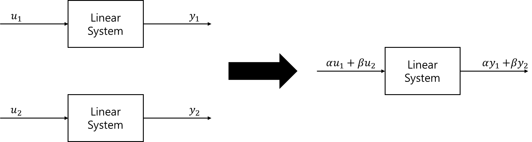 다음과 같은 Superposition principle(중첩 원리)을 따르면 Linear System이다.