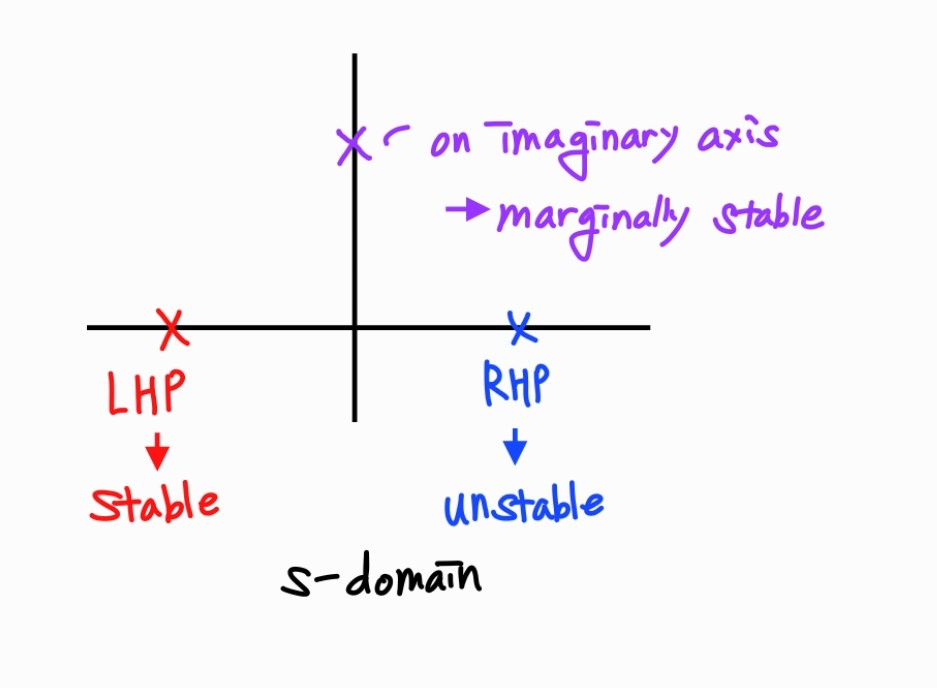unstable system은 RHP에 적어도 하나의 pole이 있거나, imaginary axis에 중복된 poles이 있는 경우이다.
