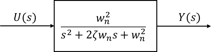 Y ( s ) U ( s ) = w n 2 s 2 + 2 ζ w n s + w n 2 \frac{Y(s)}{U(s)}=\frac{w_n^2}{s^2+2\zeta w_ns+w_n^2} U ( s ) Y ( s ) = s 2 + 2 ζ w n s + w n 2 w n 2