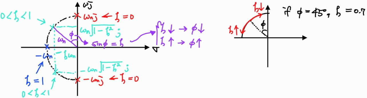 where w d = w n 1 − ζ 2 w_d=w_n\sqrt{1-\zeta^2} w d = w n 1 − ζ 2 , tan β = 1 − ζ 2 ζ \tan{\beta}=\frac{\sqrt{1-\zeta^2}}{\zeta} tan β = ζ 1 − ζ 2