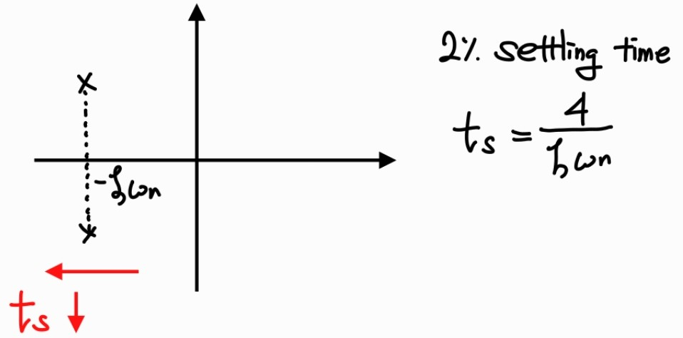 % settling time: 2 % t s ≈ 4 ζ w n 2 \% t_s\approx \frac{4}{\zeta w_n} 2 % t s ≈ ζ w n 4