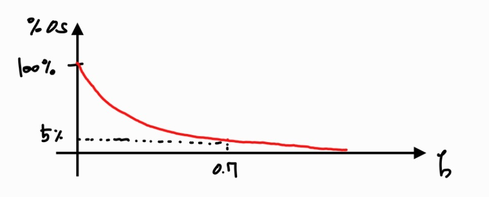 % overshoot은 damping ratio만으로 구성된 함수이다. 그래서 damping ratio가 클수록, % overshoot는 작아진다.