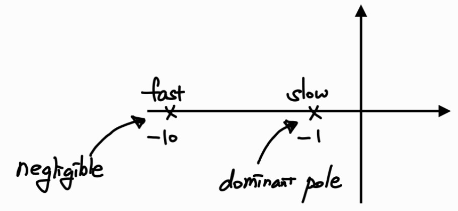 Dominant pole 의 real part 값이 다른 poles보다 충분히 크면, 다른 poles이 total response에 미치는 영향은 무시할 수 있다.
