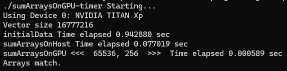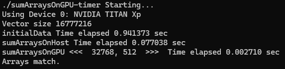 * GPU. A 1D thread block and 2D grid are used. sumArraysOnHost sequentially