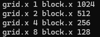 printf("grid.x %d block.x %d \n", grid.x, block.x);
