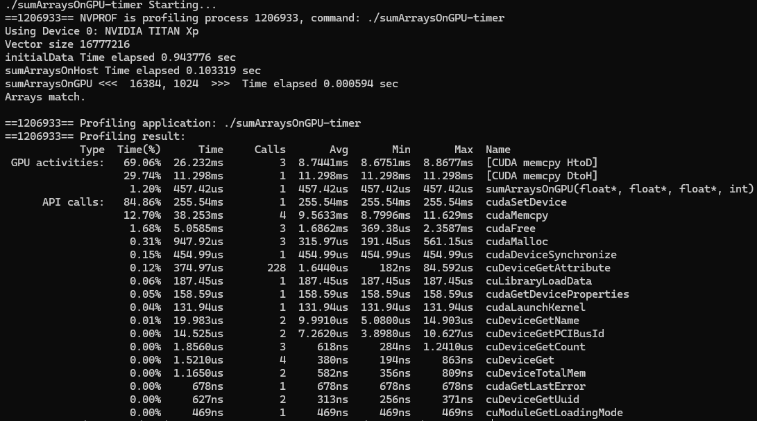 한편, 몇몇 CUDA runtime API는 host와 device 사이에서 암묵적인 동기화를 하긴 한다. host와 device 사이에서 data를 복사하는 'cudaMemcpy'을 쓰면, host 측에서 동기화가 실행되고, host application은 data 복사가 끝날 때까지 기다리게 된다.