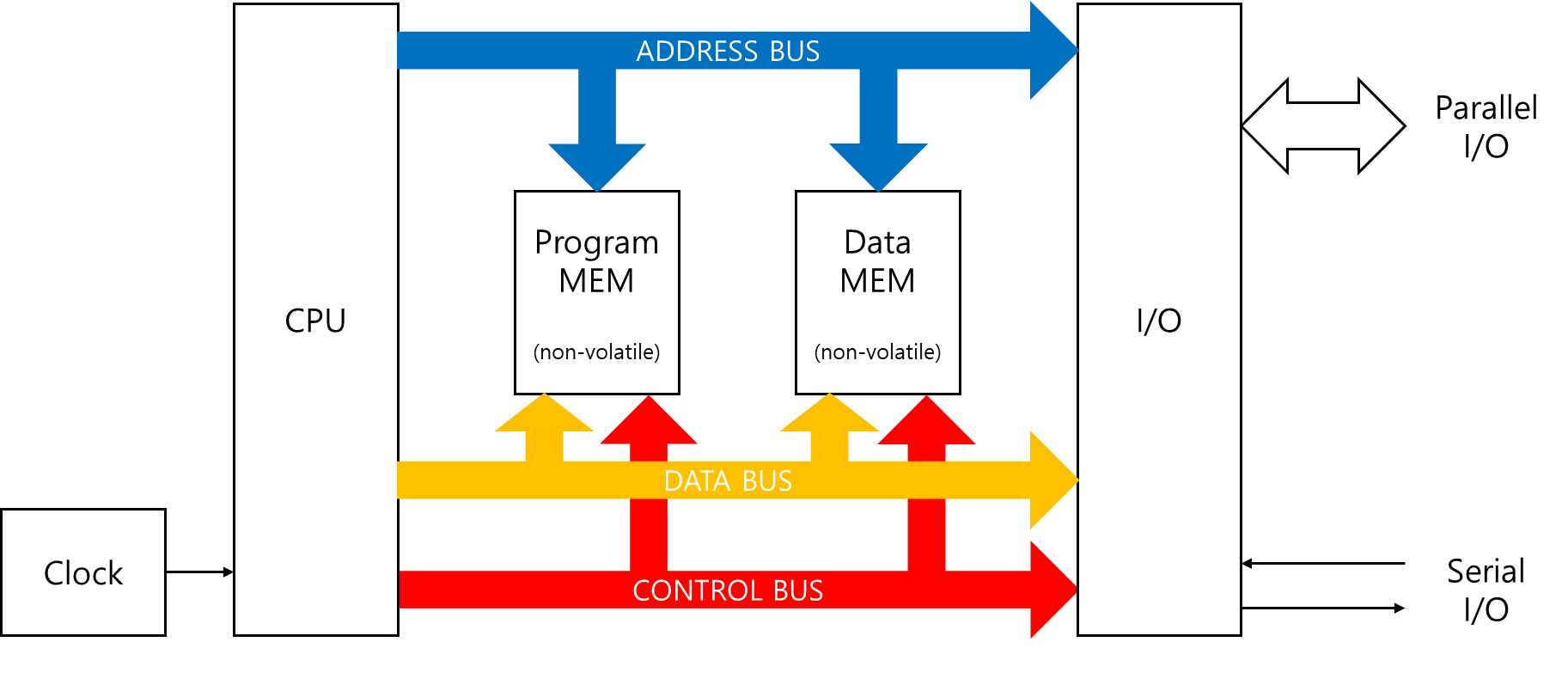 위 그림은 가장 간단한 구성이다. 실제 MCU은 위 그림보다 훨씬 복잡하다.