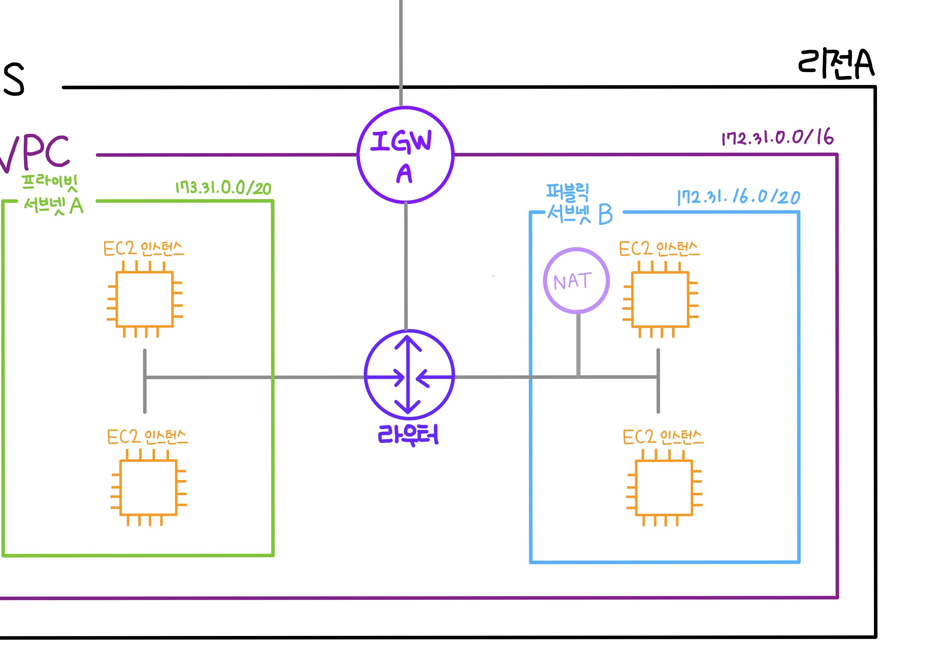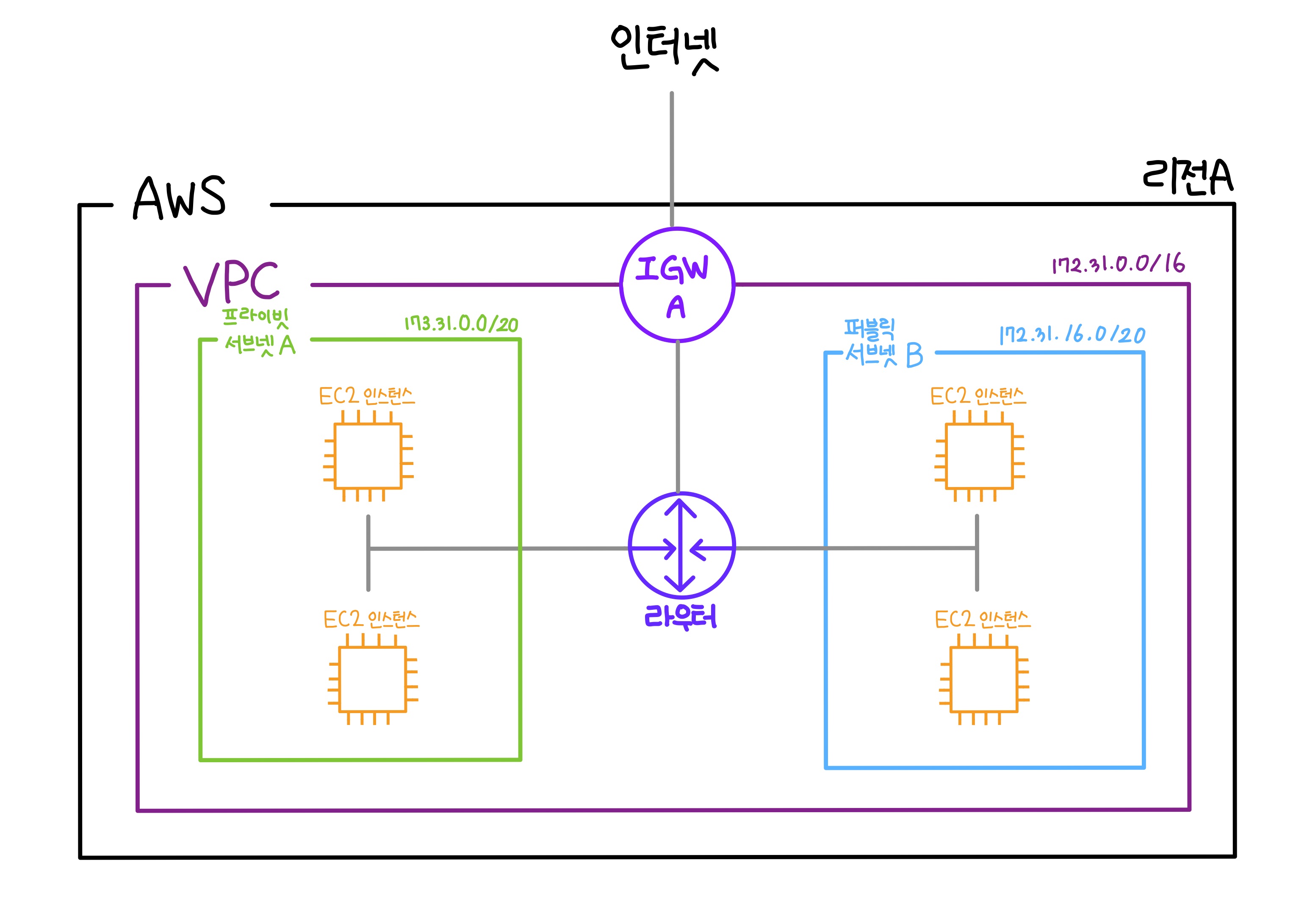 인터넷과 연결되어있지않은 서브넷을 프라이빗 서브넷 이라고 합니다.