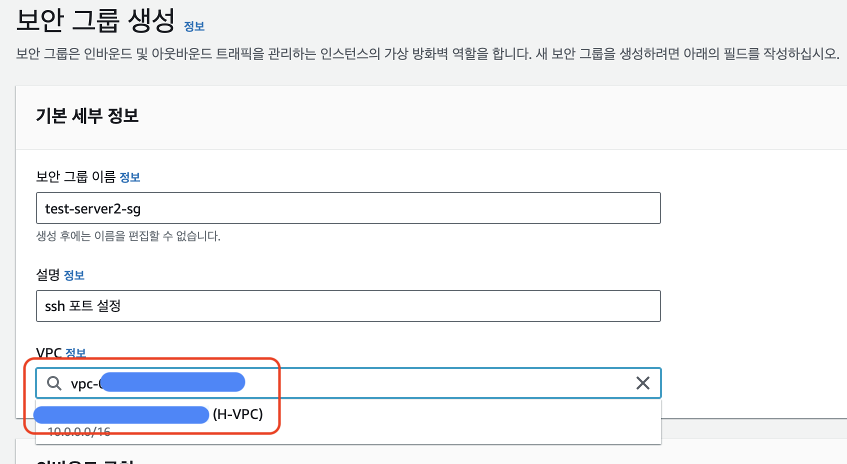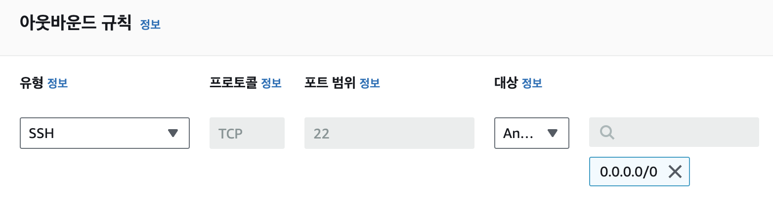 SSH 접근 테스트만 할것이기에 22 포트만 열어주도록 합니다.