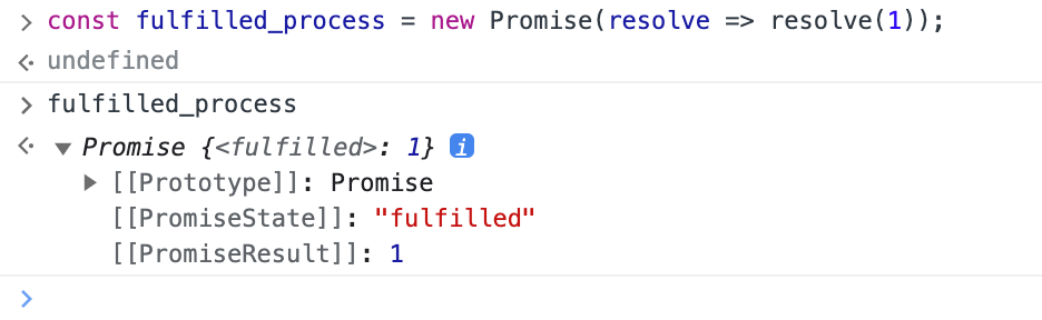 fulfilled로 예를 들어보면 1이라는 PromiseResult 값도 같이 갖는것을 볼 수 있다.