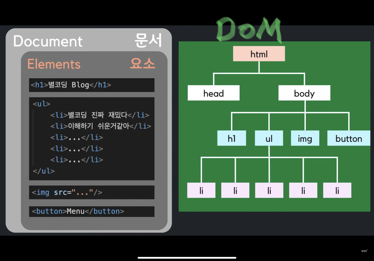 1. 이렇게 웹페이지에 들어있는 html element들을 트리형태구조로 표현한것.