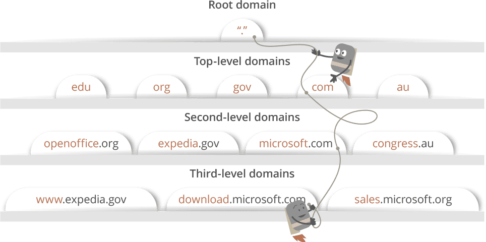 DNS recursor(ISP의 DNS서버)는 name server들에게 물어물어 올바른 IP주소를 찾는데에 책임이 있다. name server는 도메인 이름 구조에 기반해서 주소를 검색하게 되는데, 예를 들어 설명해보자면,