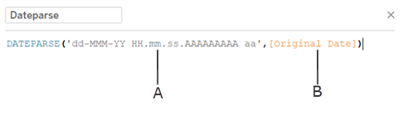 대화 상자에서 dateparse 함수를 작성한다. dateparse 함수는 형식과 문자열의 두 부분으로 구성(문자열은 변환하려는 필드로, 문자열 데이터 유형이어야 함)