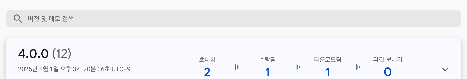 App Distribution을 통해 배포한 앱은 버전별로 Summary 확인이 가능하다.