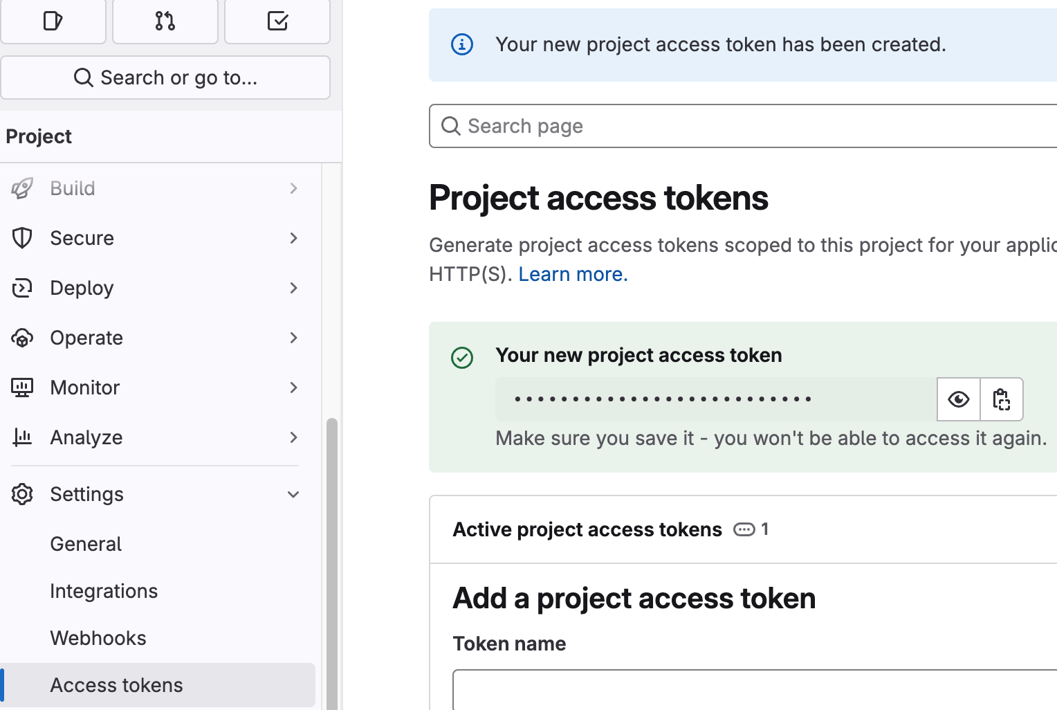 CI_TOKEN | GitLab API 접근 토큰 (glpat-... ) | Settings > Access Tokens에서 발급 후, CI/CD 파이프라인의 Git Push 권한에 사용 | |