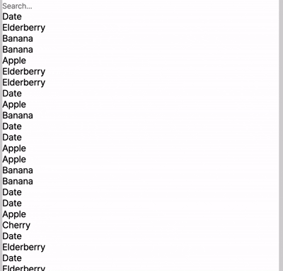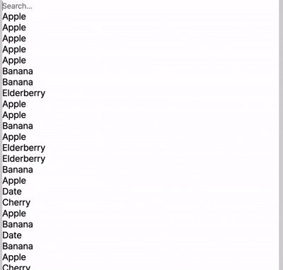 const items = ['Apple', 'Banana', 'Cherry', 'Date', 'Elderberry', 'Fig', 'Grape', 'Honeydew'];
