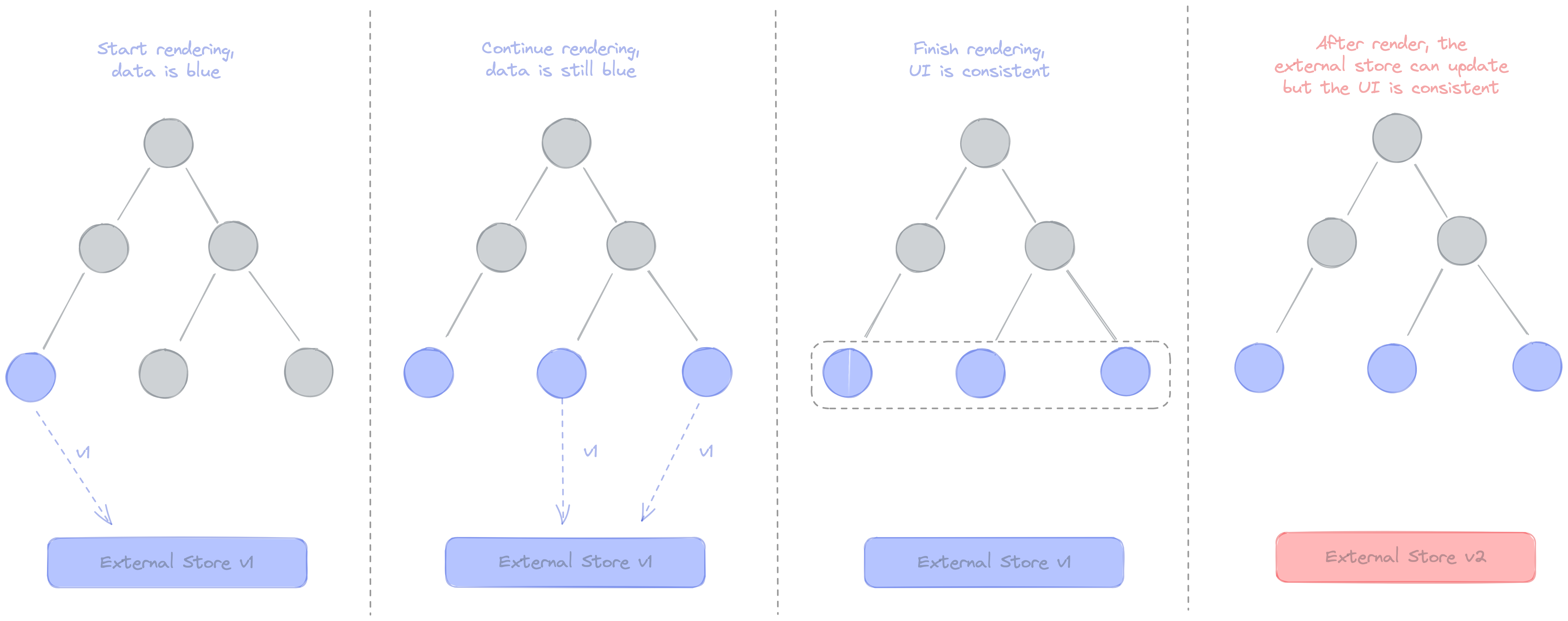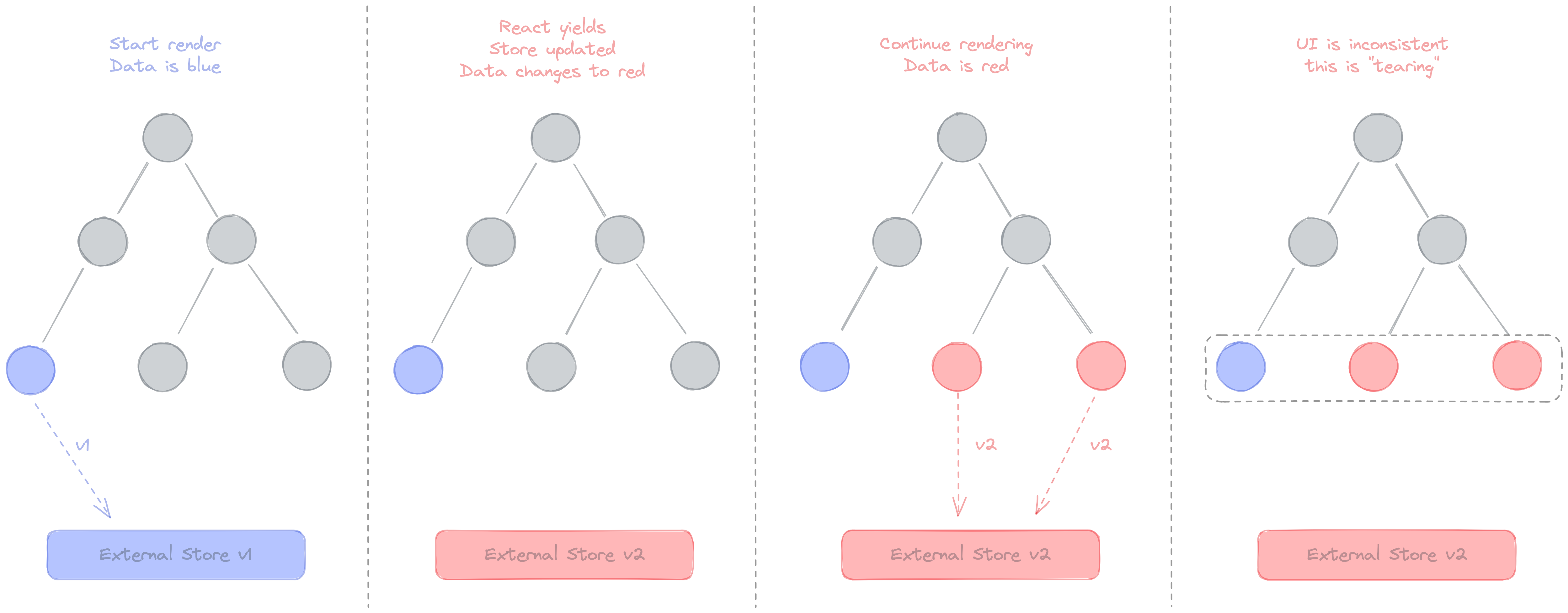 https://velog.io/@woogur29/useSyncExternalStore%EC%9D%98-%EB%82%B4%EB%B6%80-%EB%8F%99%EC%9E%91-%EC%9B%90%EB%A6%AC#%EC%B0%A2%EC%96%B4%EC%A7%90tearing-%EC%98%88%EC%8B%9C-%EC%BD%94%EB%93%9C