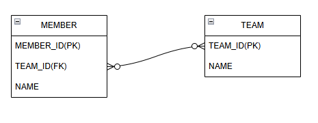 위 데이터베이스 테이블을 보면, MEMBER 테이블에는 TEAM_ID가 존재하지만, TEAM에는 MEMBER 정보가 존재하지 않습니다. 왜 그럴까요?