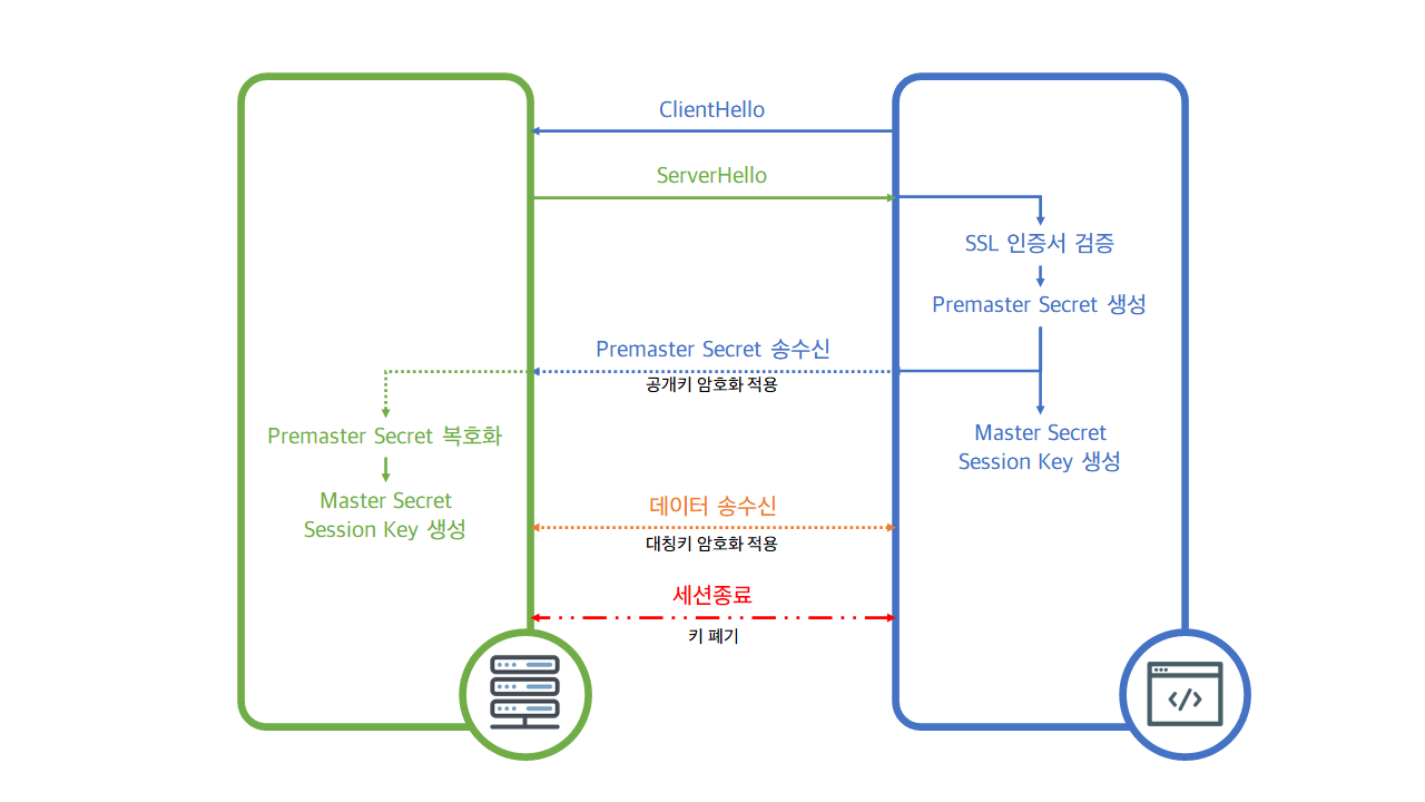 이 과정에서 클라이언트와 서버가 동일한 키를 갖게 되므로 서로 암호화 통신이 가능하게 된다.