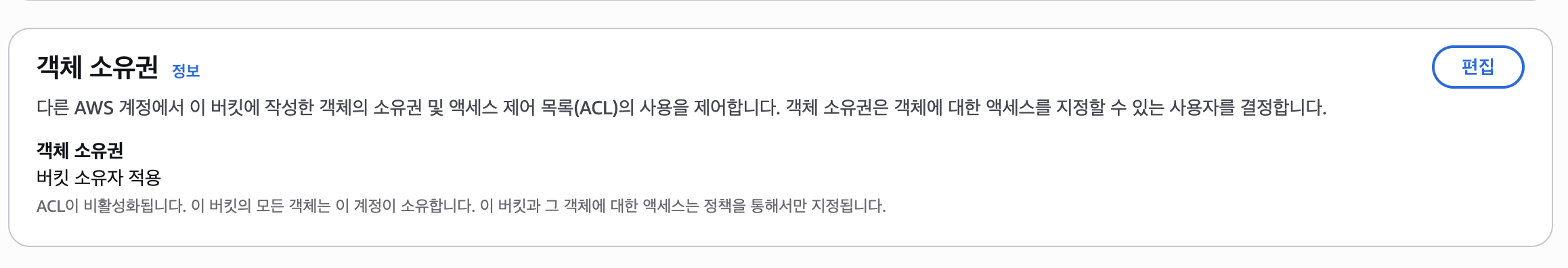 이는 ACL 권한이 없는 버킷"이라는 뜻이다.
