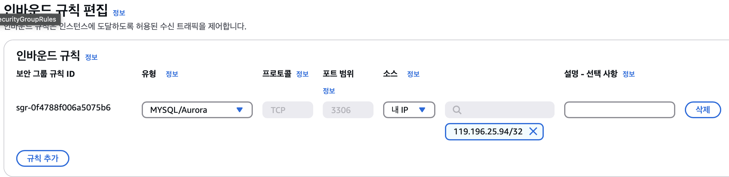 확인해보니 분명 내 IP 접속으로 허용해놓았었고,