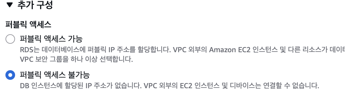 퍼블릭 엑세스를 불가능으로 설정해놓게되면 외부에서 직접 접속이 불가하다..