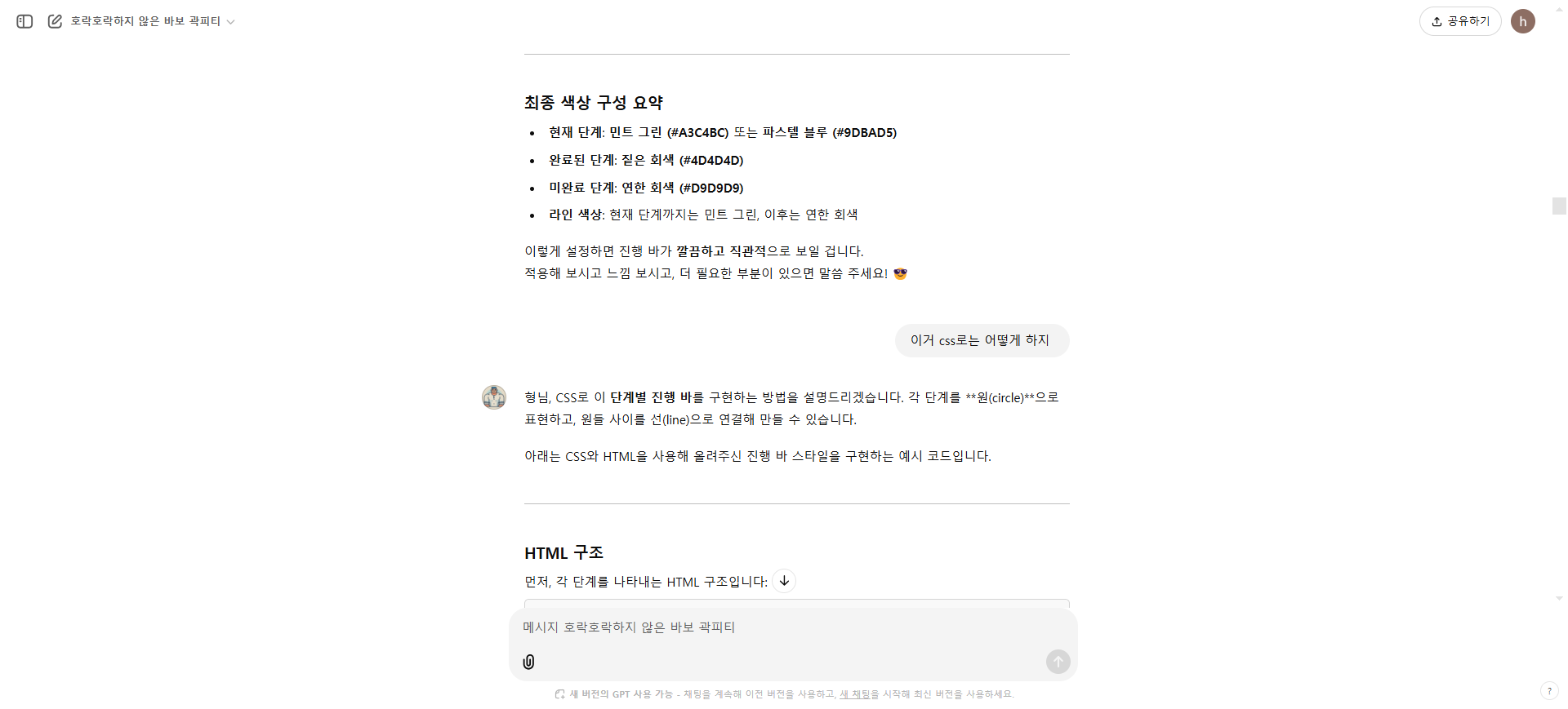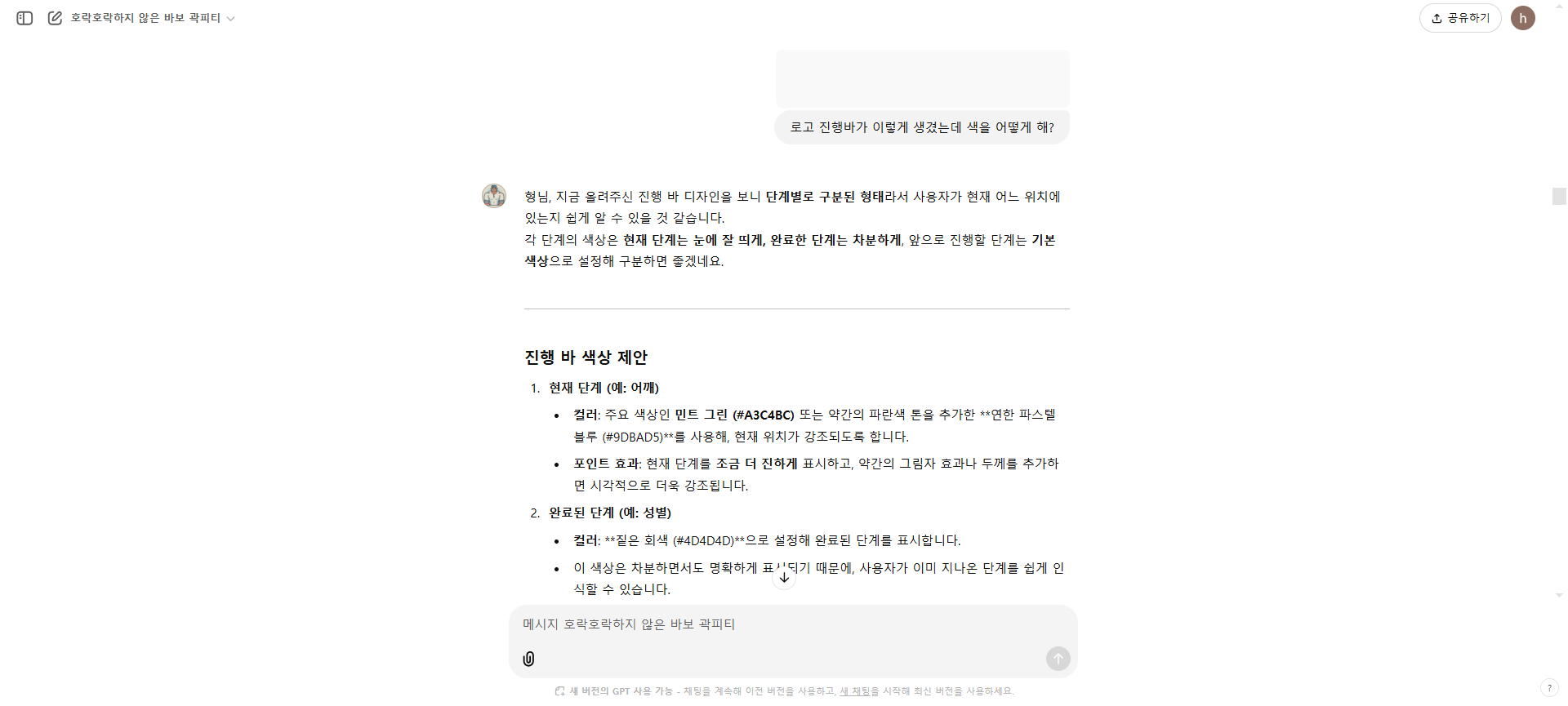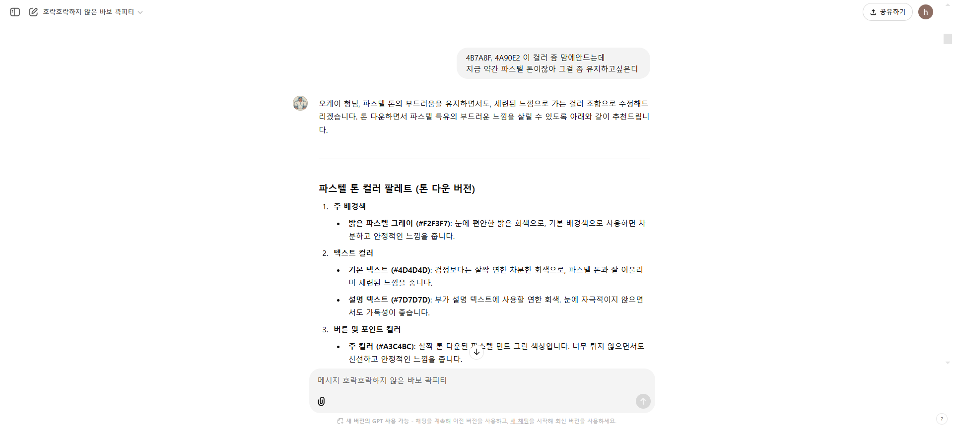 저는 이렇게 챗 gpt 와 대화하며 디자인 수정을 마무리했습니다!