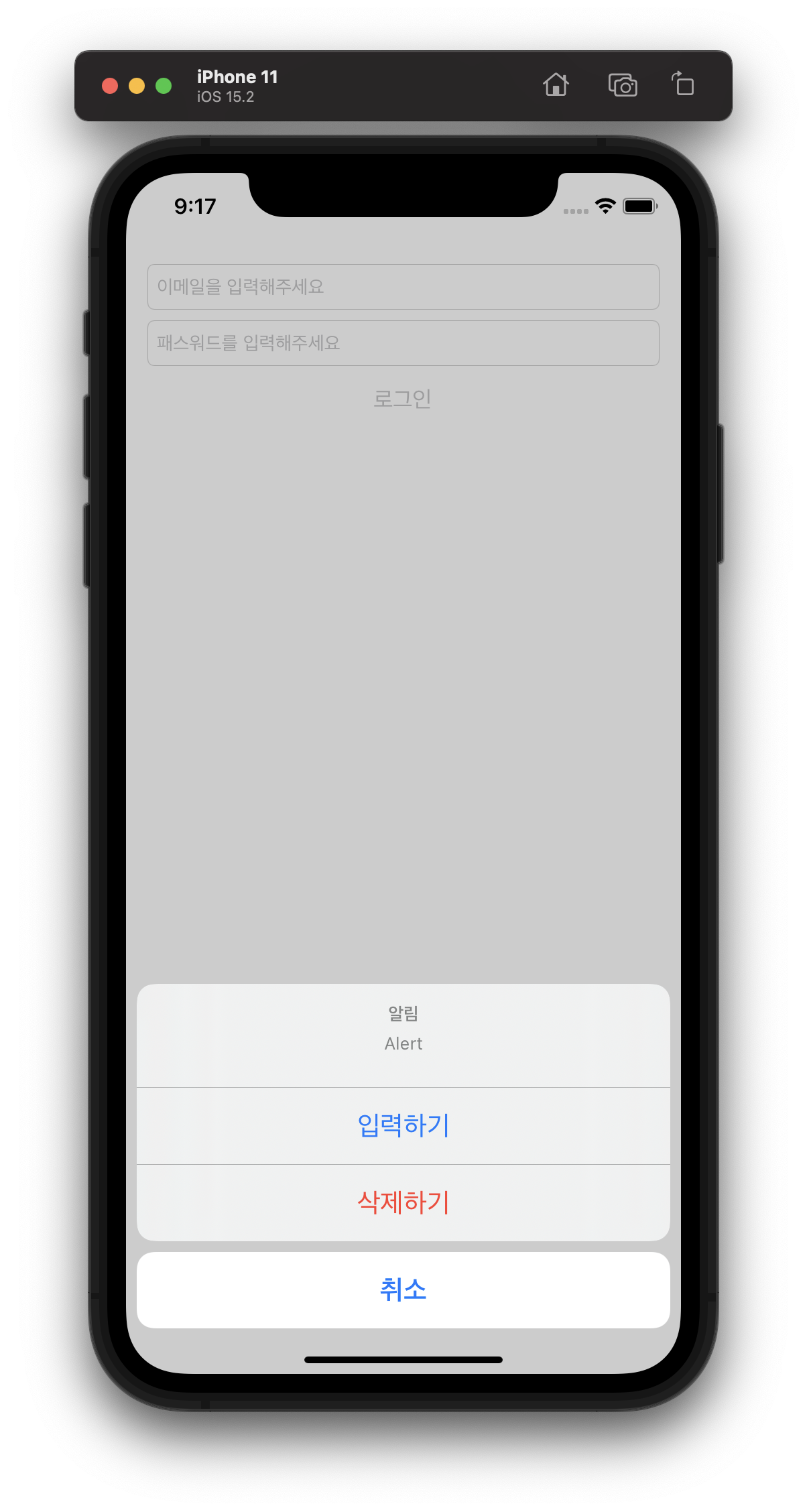 AlertController는 사용자에게 몇몇 선택지를 제공하는데, 각각의 선택지를 AlertAction이라 한다.