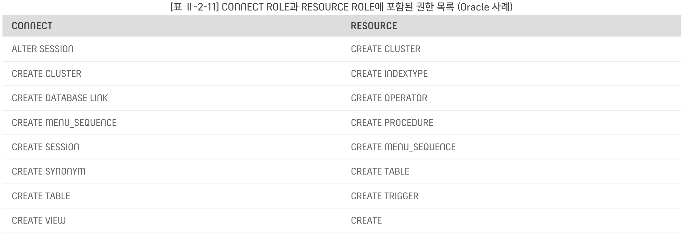 Oracle에서는 기본적으로 몇 가지 Role을 제공한다. 그 중 가장 많이 사용하는 Role은 CONNECT와 RESOURCE이다.