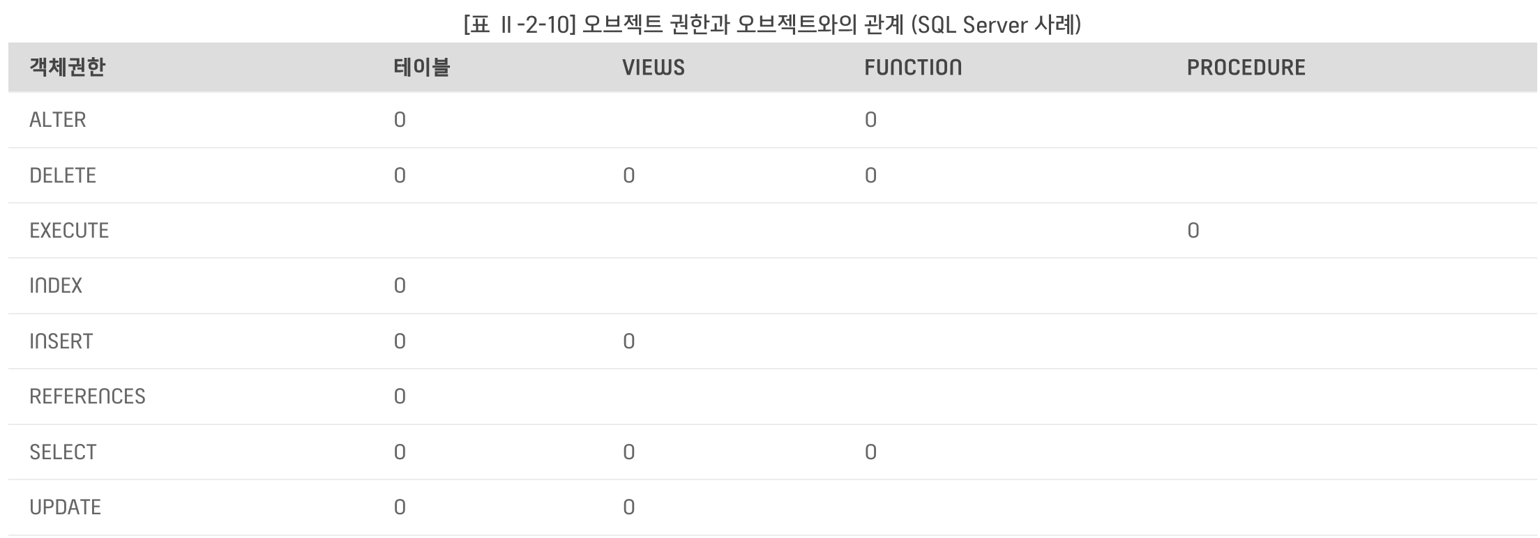 특정 유저가 소유한 객체(OBJECT)에 대해 다른 유저가 접근하거나 조작하려면 필요한 권한을 소유자로부터 부여받아야 한다. 오브젝트 권한은 테이블, 뷰 등 특정 오브젝트에 대한 SELECT, INSERT, DELETE, UPDATE 작업 명령어를 의미한다.
