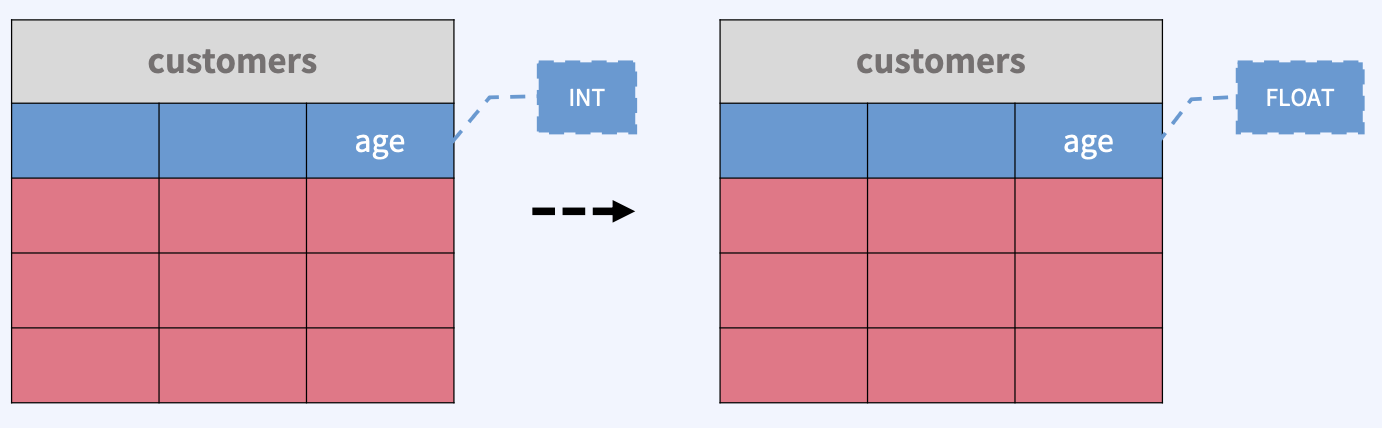 ALTER TABLE customers MODIFY COLUMN age FLOAT;