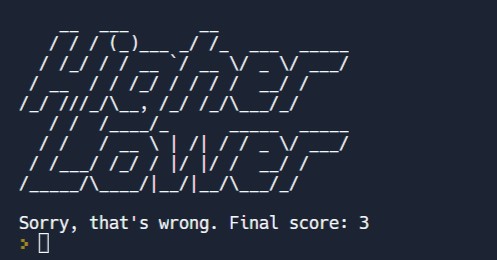 - 답이 틀렸으면, 게임이 종료되고, 최종 스코어를 알려준다.