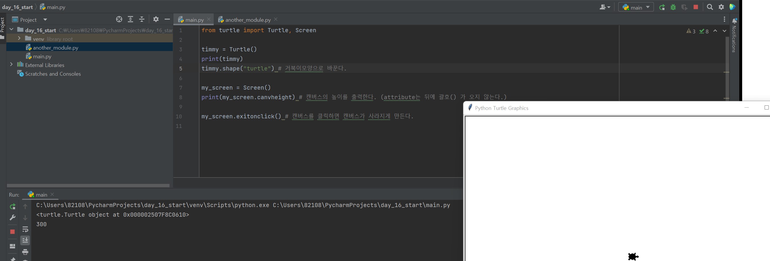 파이썬에 기본으로 깔려있는 터틀 패키지와는 다르게, 파이썬 패키지 인덱스에서 찾은 패키지를 사용하려면, 설치가 필요하다.