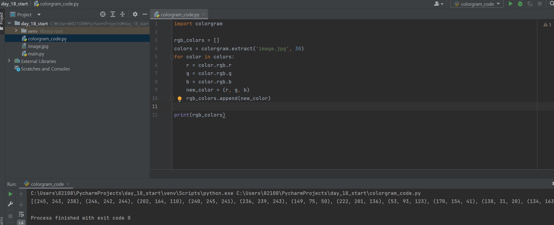 r=, g=, b= 를 따로따로 for 형식으로 만들어서 append한 이유는, 튜플 형식으로 만들기 위해서이다.