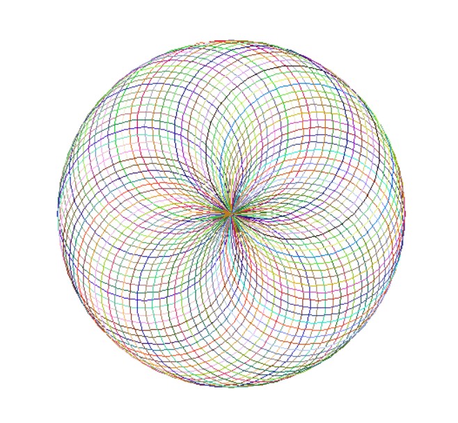 터틀을 움직여 반지름이 100인 여러 개의 원을 그린다.