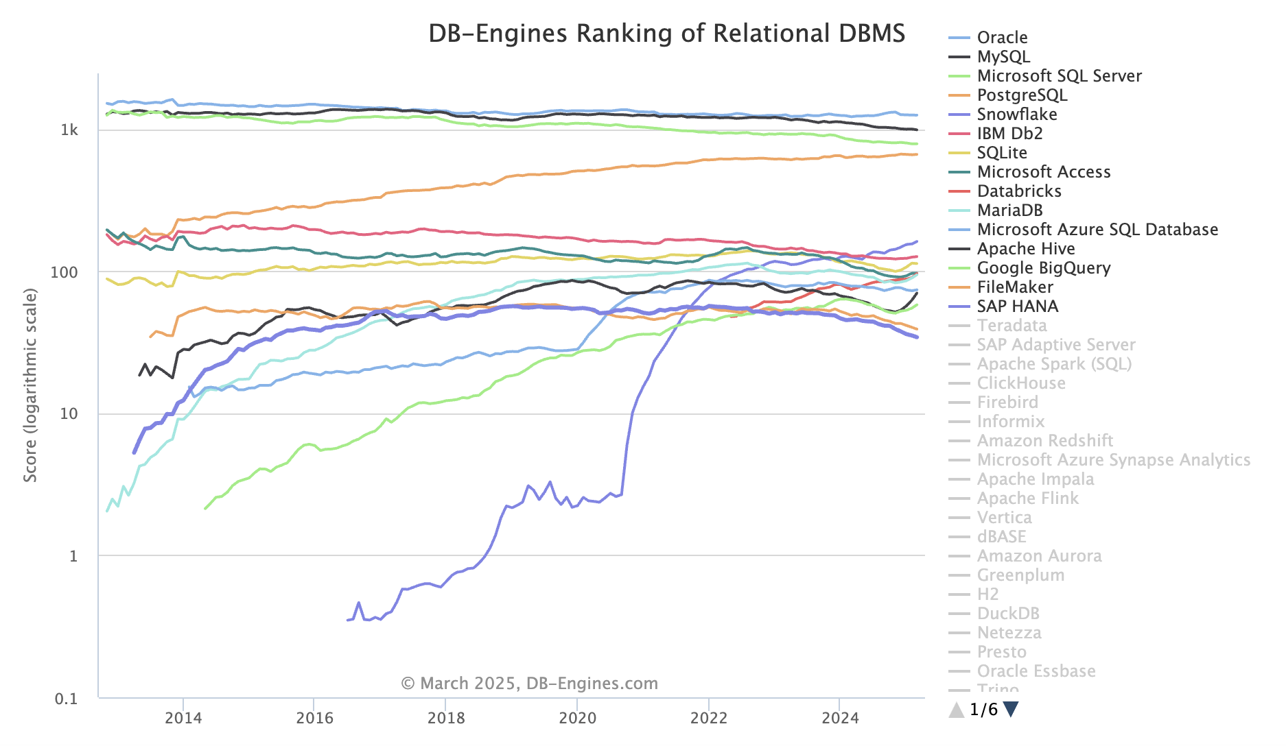 출처 : https://db-engines.com/en/ranking_trend/relational+dbms