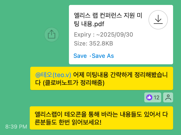 미팅을 진행하면서 엘리스랩이 테오콘에 바라는 부분과 우리가 미처 고려하지 못했던 부분들을 생각해볼 수 있었다.