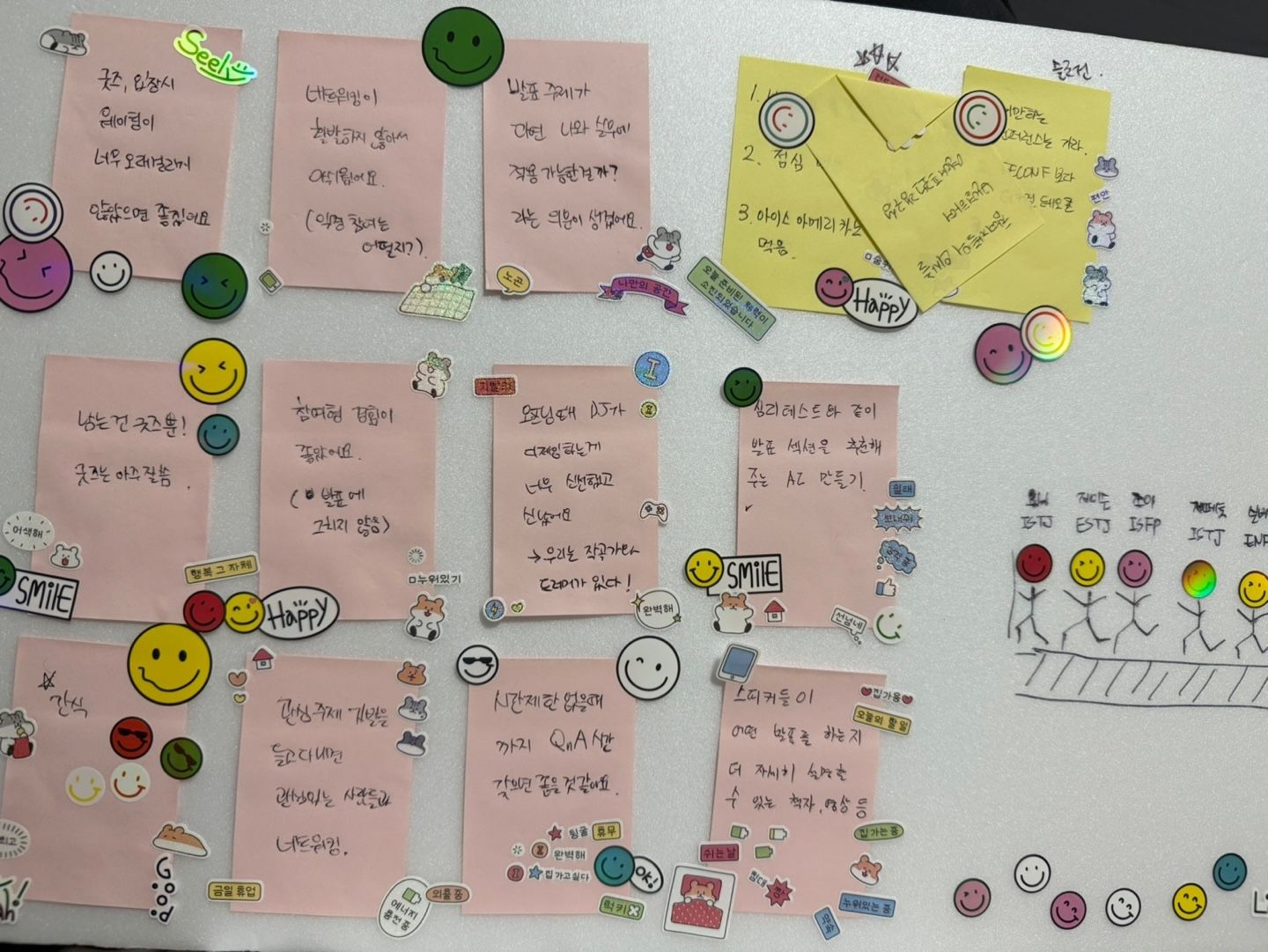 입장 시간부터 참여자의 자리 배정을 어떻게 할지, 경품이나 굿즈는 어떤 방식으로 배분할지, 발표나 오프닝은 어떤 방식이 좋을지, 즐거운 네트워킹을 어떻게 녹여낼지 등등 많은 이야기를 나눴다. 기발한 아이디어나 놓쳤던 부분들을 짚어볼수 있었다.