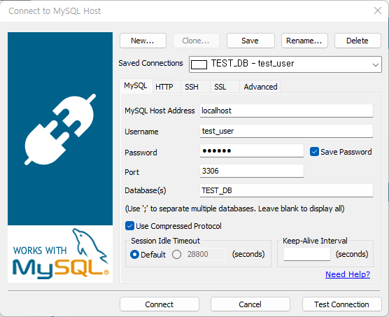 - 이후 작업을 위해 다시 TEST_DB 생성