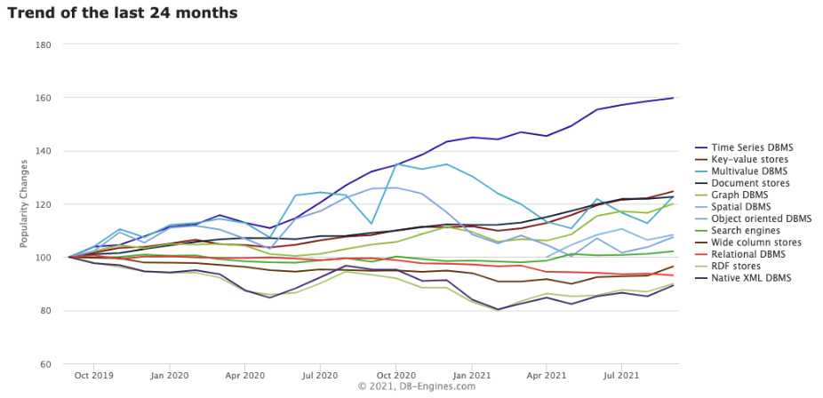 아래 그래프를 보면 최근 Time Series Database(시계열DB)의 증가세를 확인할 수 있다.