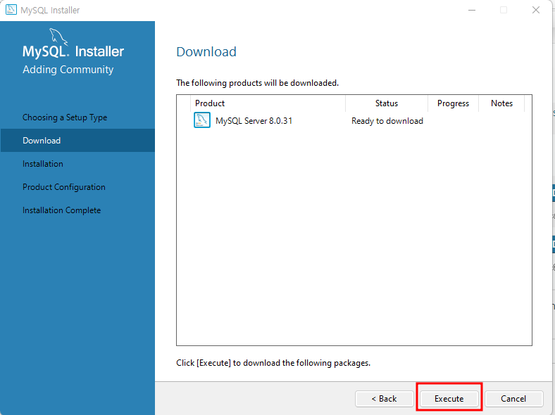 3) "Ready to downlaod" 상태에서 Execute 버튼 클릭