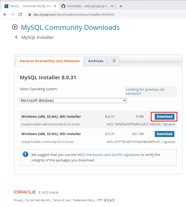 Download URL : https://dev.mysql.com/downloads/windows/installer/8.0.html