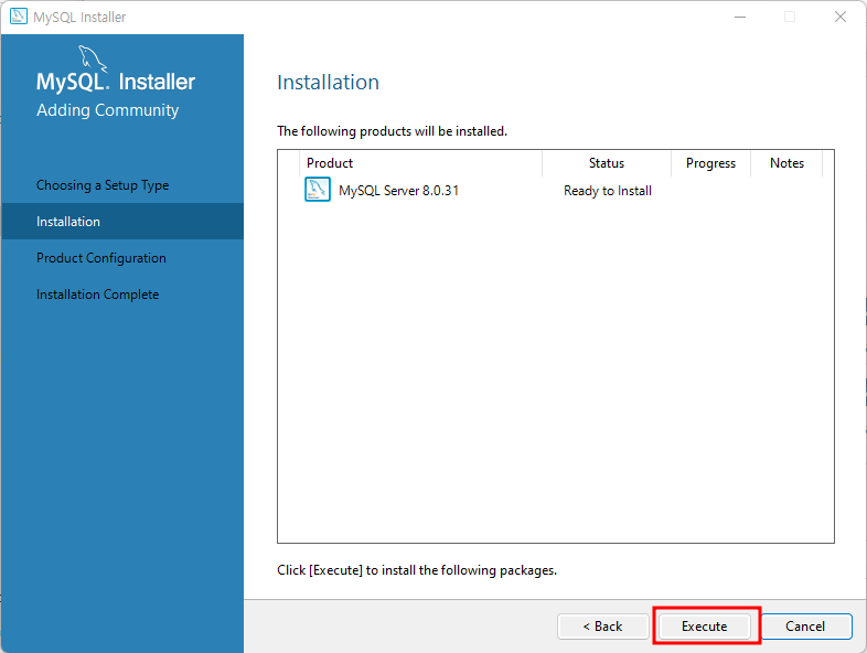 5) "Ready to Install" 상태에서 Execute 버튼 클릭
