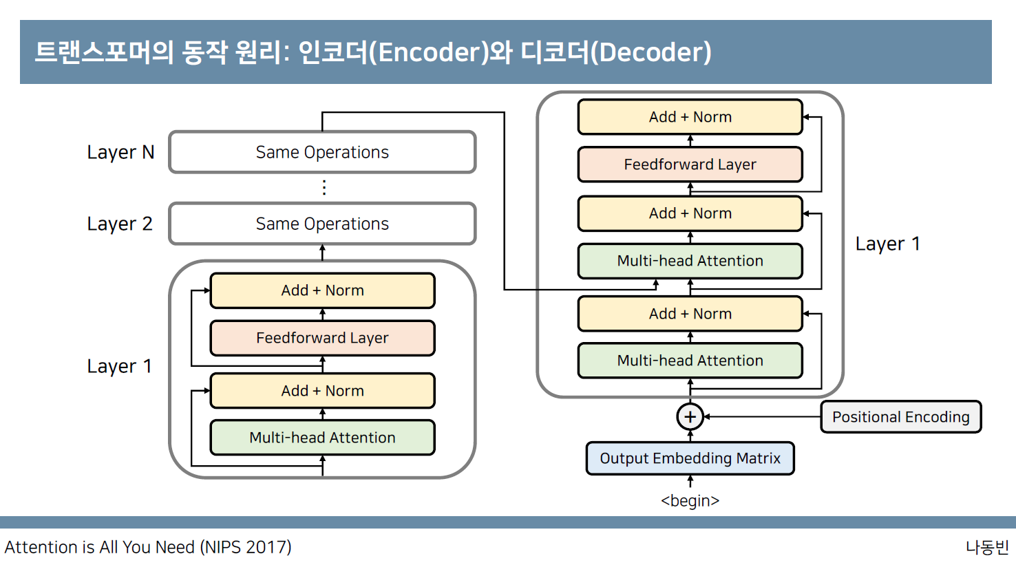 Transformer는 Seq2seq 모델에 attention을 추가한 구조이다.