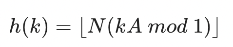 여기서 NN 은 2의 제곱꼴을 사용하면 안된다고 하는데 이는 그 제곱꼴이 로 나타날 때 k의 하위 p개의 비트를 고려하지 않기 때문에 N 은 소수(Prime Number)를 사용하는 것이 좋습니다