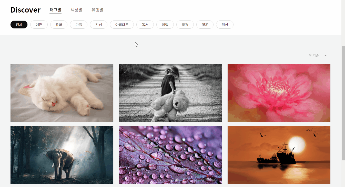 - 메뉴 탭, 카테고리 필터링, 인기순/최신순 정렬 총 3가지를 구별해서 볼 수 있습니다.