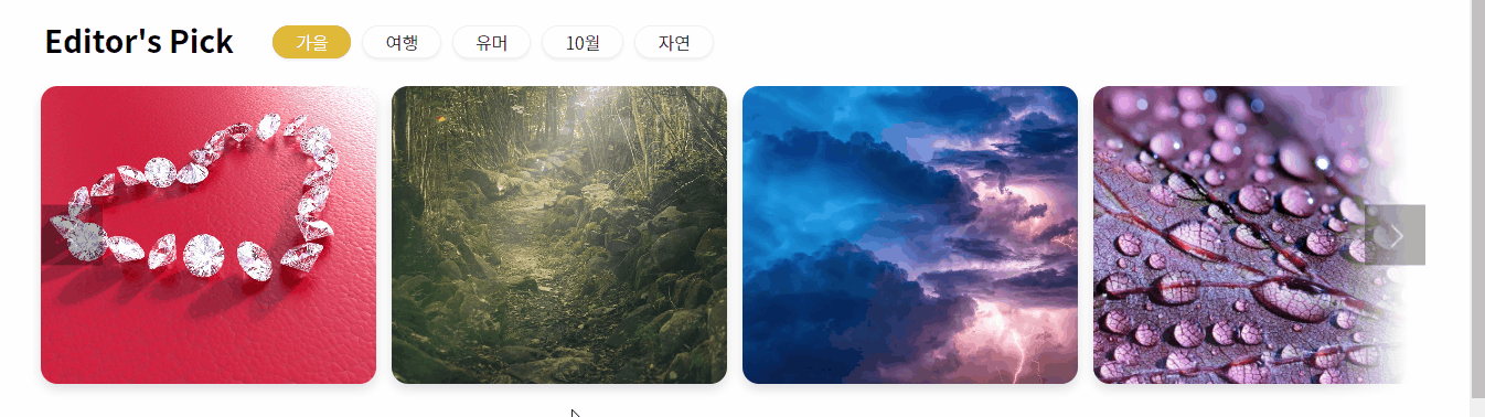 - 상단의 태그를 클릭하면 태그에 맞는 슬라이드를 리랜더링 합니다. 이때 클릭한 태그의